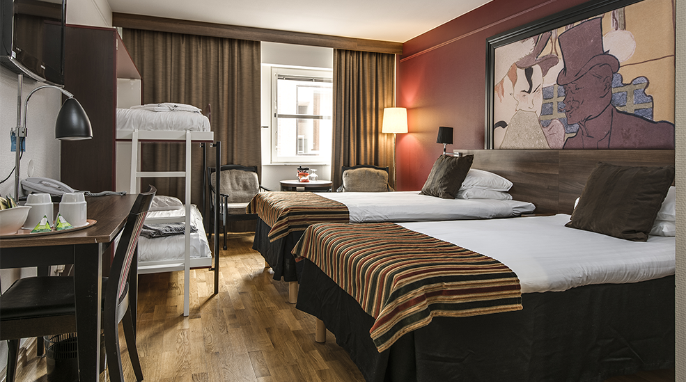 Perheelliset majoittuvat meillä mukavasti. Perhehuoneemme on kalustettu kahdella 105 cm leveällä erillisvuoteella sekä kahden hengen kerrosvuoteella. HUOM! Jos huone varataan kolmelle henkilölle, voidaan kyseiselle seurueelle tarjota huone jostain toisesta huoneluokasta.